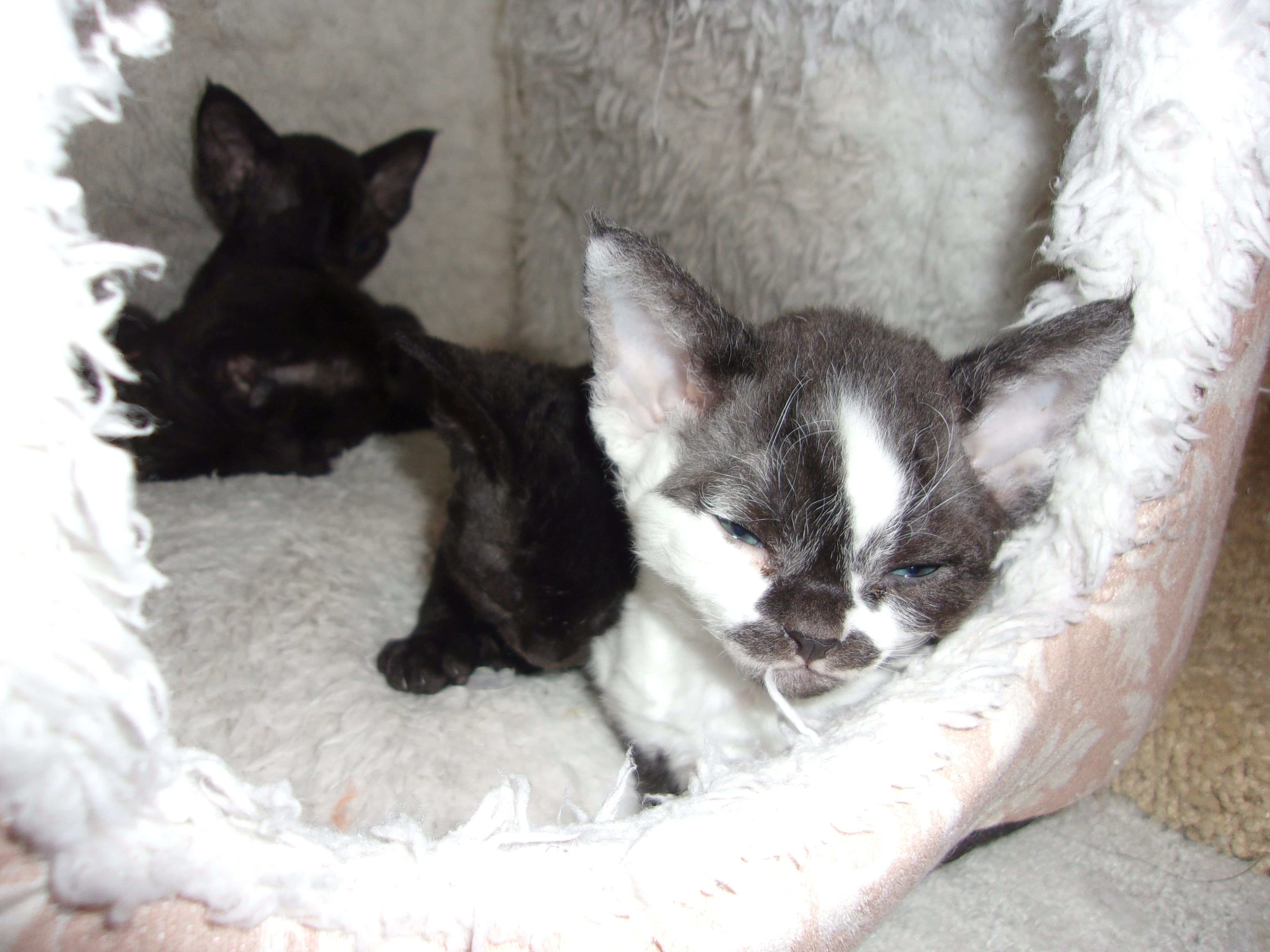 Silver/white tabby female (sold) Black/smoke female (sold)